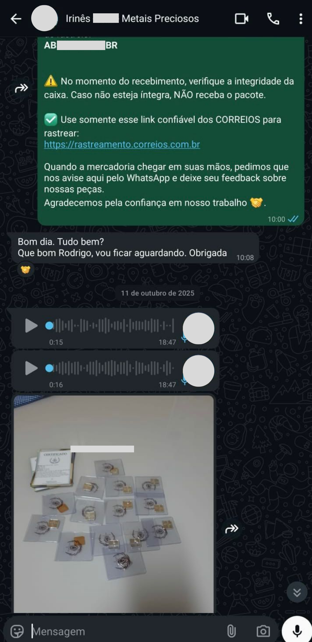 Ativos reais com pureza 999, entrega segura e atendimento consultivo.